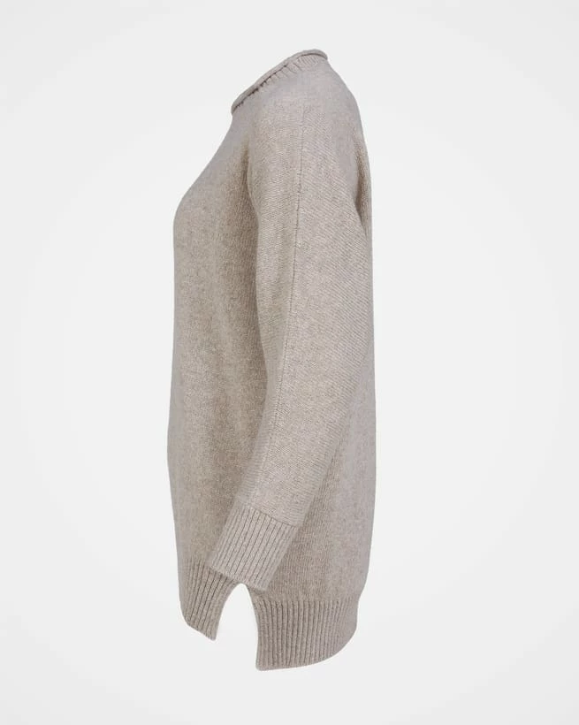 This traditional fisherman’s style crewneck is soft and light. The slouchy, oversized fit means it can be dressed up or down easily, and the neckline features a wide rib and cast off edge. An easy-to-wear sweater that feels weightless, the dropped shoulders and split hem give it a cosy yet stylish silhouette. Lending itself to any season, it is the perfect layering piece with blue denim and linen pants alike.