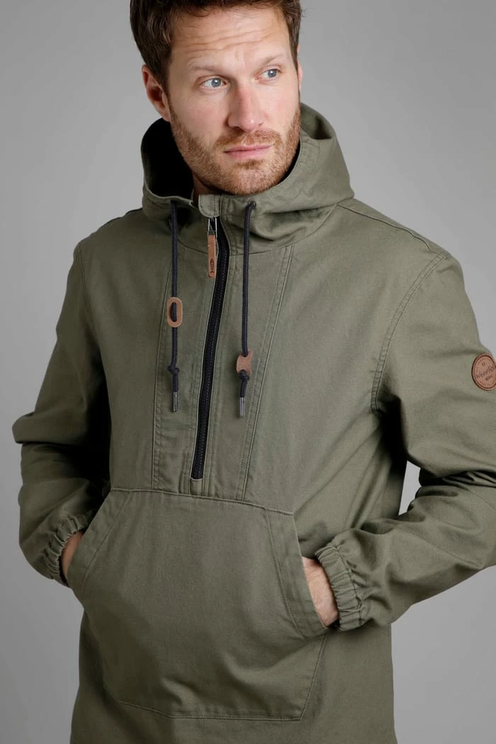 Add some classic style to any casual look with our Arno Popover Jacket. This high quality canvas jacket features a kangaroo pocket, 1/4 zip and hood with drawstrings to tighten if needed.
