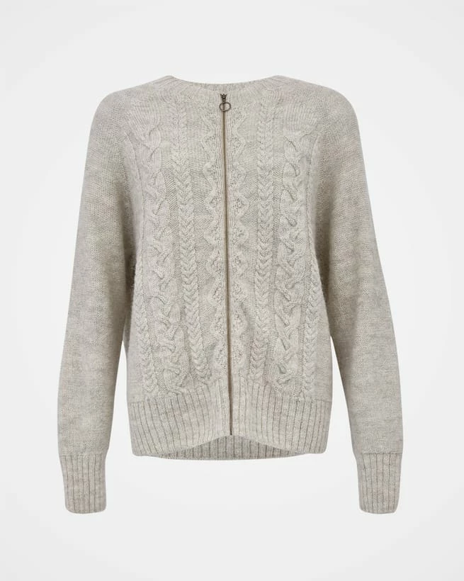 We’re proud to say that from farm to factory, our Cable Zip Cardigan is produced entirely in the UK! The colour way of this cardigan is totally natural as no dyestuffs were used in the process of creating the yarn. Natural fibres allow your skin to breathe whilst keeping you warm in winter. Details include cabling running down the body, a crew neck, ribbed cuffs, collar and hem and a metal zip down the centre.