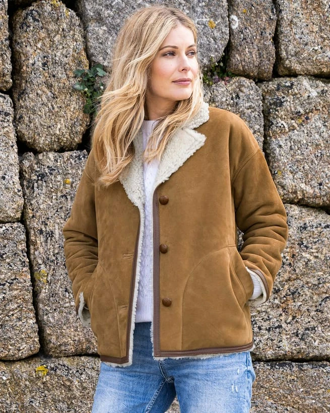 All of our shearing outerwear garments are specialist dry clean only. They are pre-treated to resist marks and stains before they leave us, however, over time you may wish to reapply this treatment at home, and this can be done by using a high-quality protector spray, on the suede/leather side of your garment. Please ensure that you follow the instructions on the can and hold the product at the required distance so that the liquid cannot run down the garment. If your shearling outerwear does become marked, it can be easily sponged and brushed, but for a complete clean, please send it to a specialist dry cleaner.
