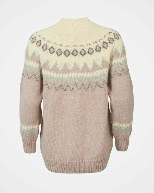 Delivering a modern and feminine take on the classic Fair Isle Sweater, this seamless sweater is knitted in a Shetland-style wool with a rustic handle and a midweight feel.