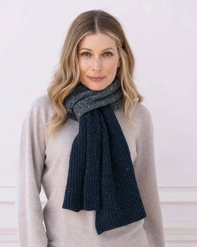 When it comes to Donegal wool, only the real thing will do. This unisex scarf is designed to accentuate the famous yarn’s characterful flecking with a colour-block detail and a simple ribbed structure. Crafted in Britain, it has a warm and cosy feel that’s sure to make it a firm favourite this winter (and beyond).