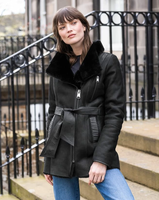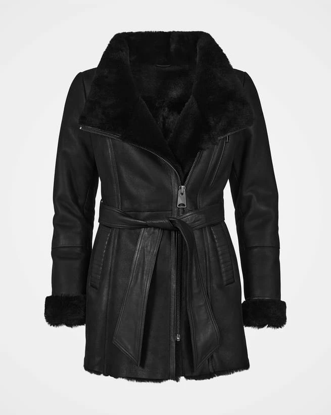 Cut to a feminine silhouette that sits flatteringly at the hip, this elegant jacket is crafted in merino sheepskin with a nappa outer for a buttery soft and supple feel.