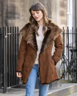 Toscana shearling is renowned for its super-soft hide and silky, fur-like wool that together provide incredible insulation and a truly indulgent wearing experience. We’ve given the leather a sueded finish, which beautifully complements the double-dyed wool tips that appear at the collar, cuffs and hem. The cosy hood can be fastened with a button closure to protect your face and neck, while an asymmetric zip adds a contemporary touch.