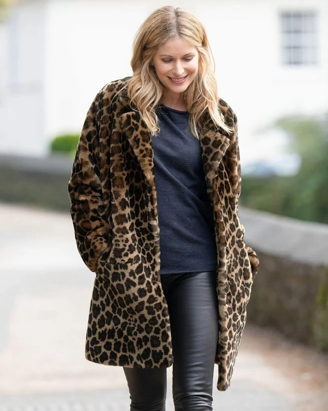 Our three-quarter-length coat is a luxurious way to channel the animal-print trend this season.