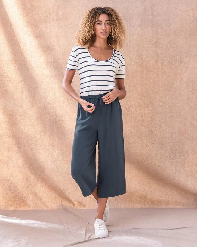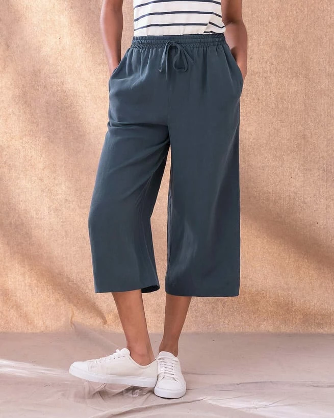 Cut to a floaty silhouette with a wide leg and topped with a drawstring waistband made with recycled elastic, our cropped pants have an unbelievably soft and fluid quality that’s perfect for summer.