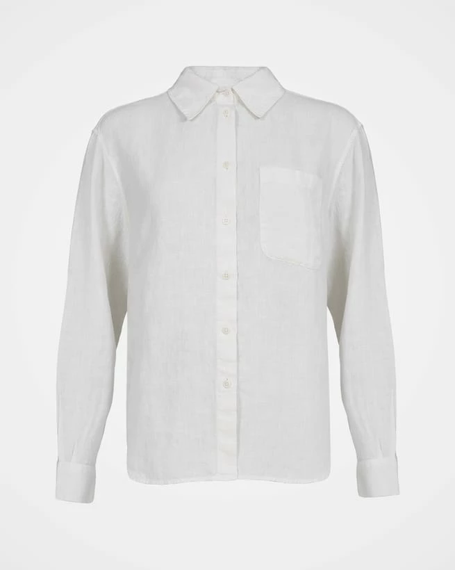 The linen shirt: a timeless classic and wardrobe must-have. With collar, buttoned cuffs, patch pocket, box pleat under the yoke and typical shirt shape, this staple has a relaxed fit that pairs beautifully with denim for an understated look.