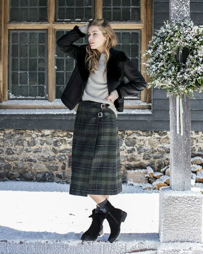 Our best-loved kilt but in a trending midi length to fall around mid calf. The longer cut makes this the ideal foundation for building a modern winter look with hints of the traditional. Expertly crafted for Celtic & Co. by one of the last remaining kilt manufacturers in Scotland, this fully lined kilt is made in pure wool with a wrapped design and twin leather straps for an adjustable fit at the waist.