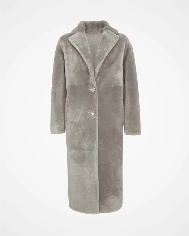 Crafted with a minimalist style in pale grey Merino shearling, it boasts a sumptuously soft feel on one side and a tonal nappa finish on the other. So you can switch it around to suit your mood and the occasion.