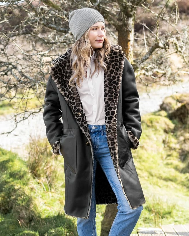 Here to see you through cold snaps in style, this reversible coat is crafted in British shearling with a nappa finish on one side and a statement Snow Leopard print on the other.