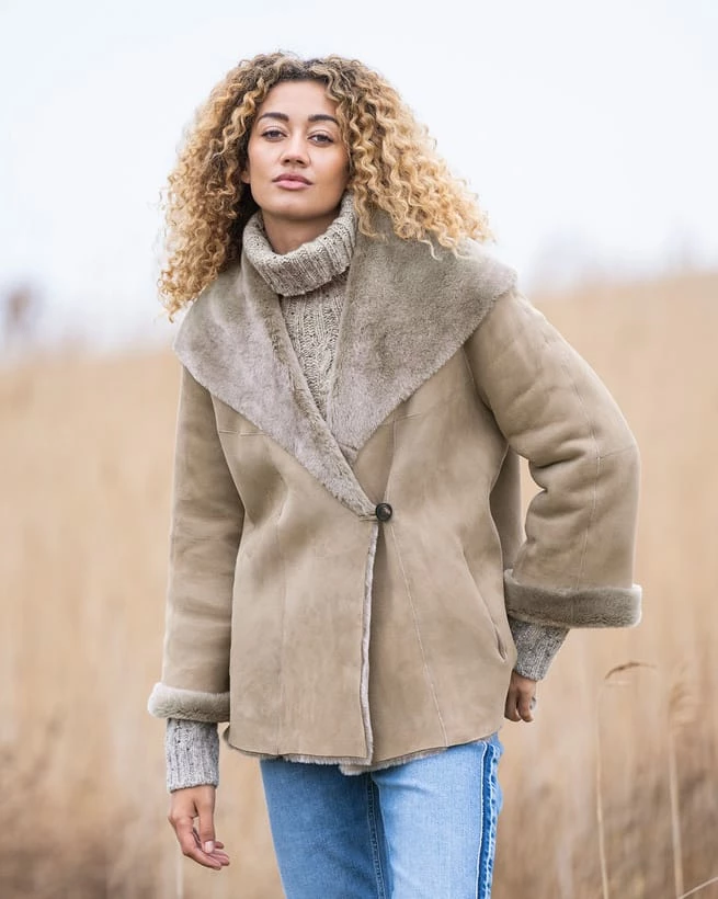 All of our shearing outerwear garments are specialist dry clean only. They are pre-treated to resist marks and stains before they leave us, however, over time you may wish to reapply this treatment at home, and this can be done by using a high-quality protector spray, on the suede/leather side of your garment. Please ensure that you follow the instructions on the can and hold the product at the required distance so that the liquid cannot run down the garment. If your shearling outerwear does become marked, it can be easily sponged and brushed, but for a complete clean, please send it to a specialist dry cleaner.