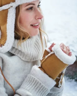 Finished with fluffy turnbacks for added character, these warmers can be teamed with the matching trapper-style hat to complete the look.