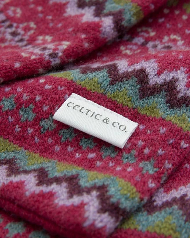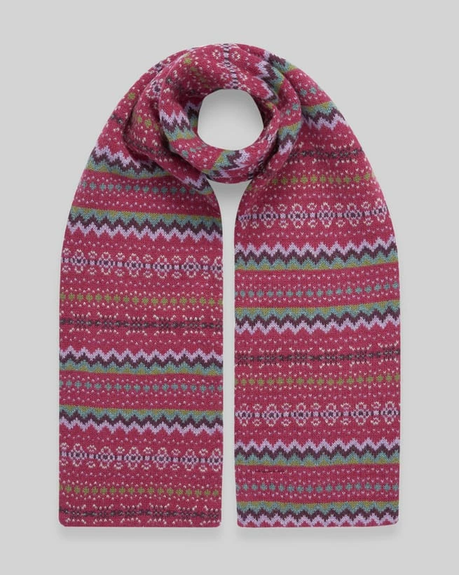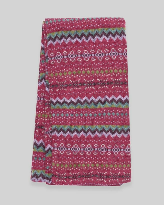 Crafted in lambswool in a double layered design that has a luxuriously soft and cosy feel. Our Fair Isle scarf is knitted with an all-over colourful zig zag pattern, adding vibrancy to the colder months. Coordinating effortlessly with our Fair Isle gloves and beret, these accessories are both stylish and practical. Pair with a knitted jumper and jeans for the perfect winter look.
